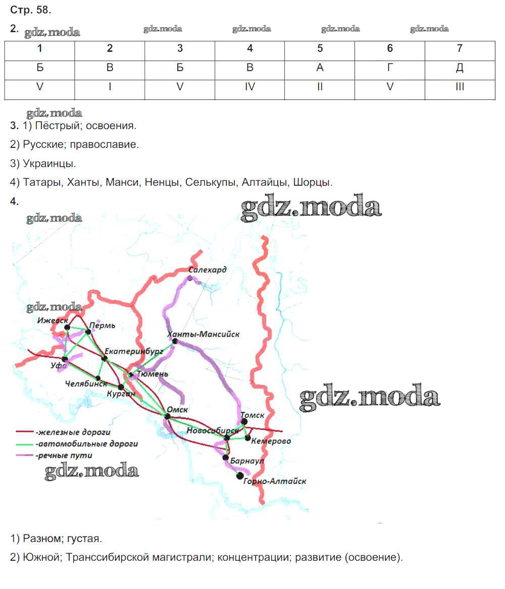 ГДЗ решение к заданию № 58 География 9 класс рабочая тетрадь Таможняя Е.А. Вентана-граф 2017 ФГОС бесплатно на гдз.мода!