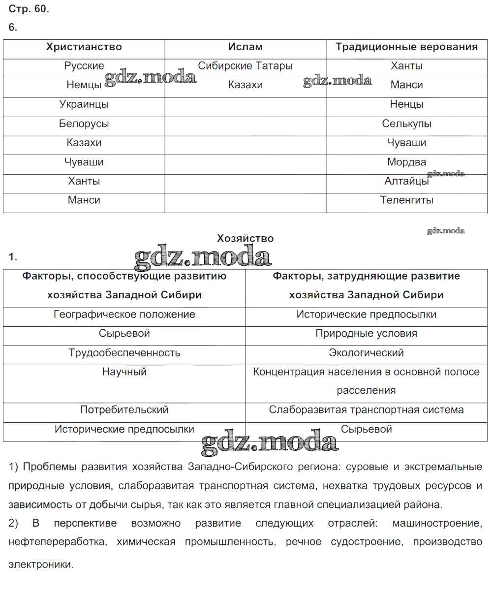 ГДЗ решение к заданию № 60 География 9 класс рабочая тетрадь Таможняя Е.А. Вентана-граф 2017 ФГОС бесплатно на гдз.мода!