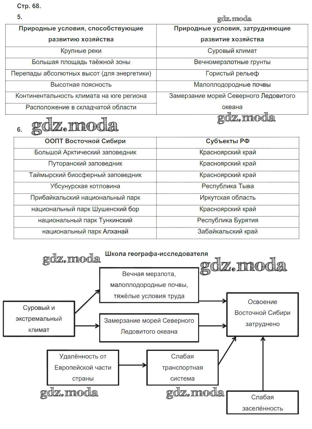 ГДЗ решение к заданию № 68 География 9 класс рабочая тетрадь Таможняя Е.А. Вентана-граф 2017 ФГОС бесплатно на гдз.мода!