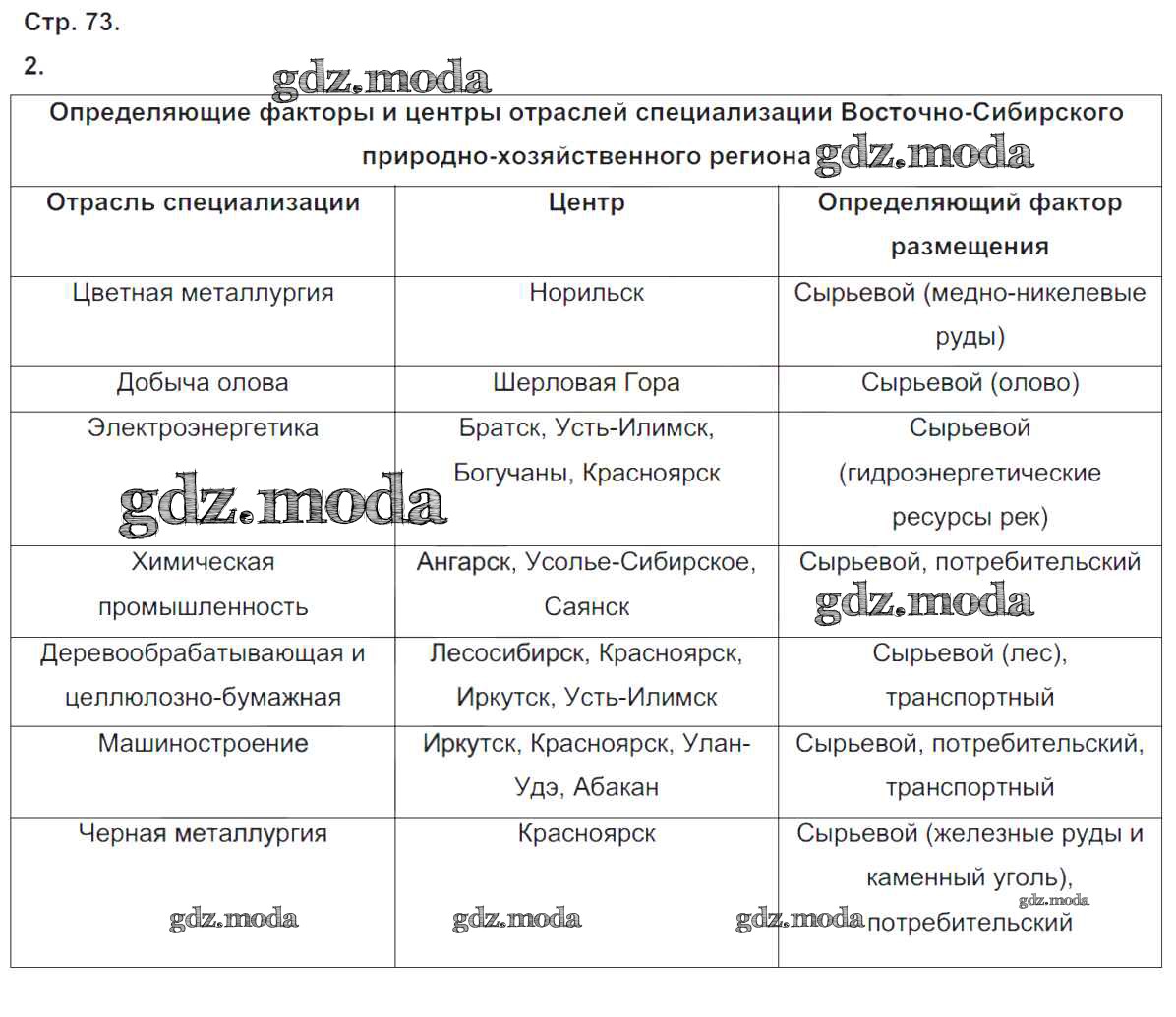 ГДЗ решение к заданию № 73 География 9 класс рабочая тетрадь Таможняя Е.А. Вентана-граф 2017 ФГОС бесплатно на гдз.мода!