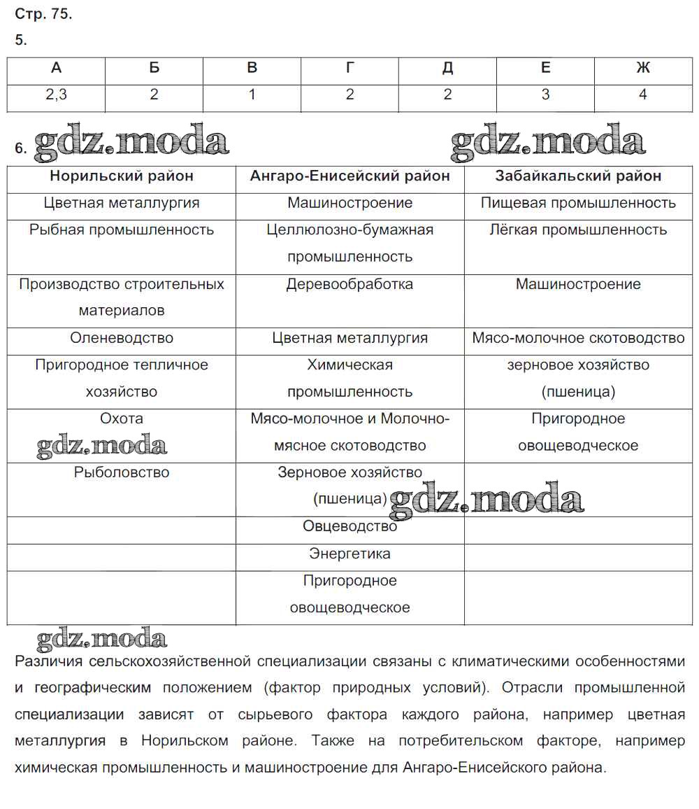 ГДЗ решение к заданию № 75 География 9 класс рабочая тетрадь Таможняя Е.А. Вентана-граф 2017 ФГОС бесплатно на гдз.мода!