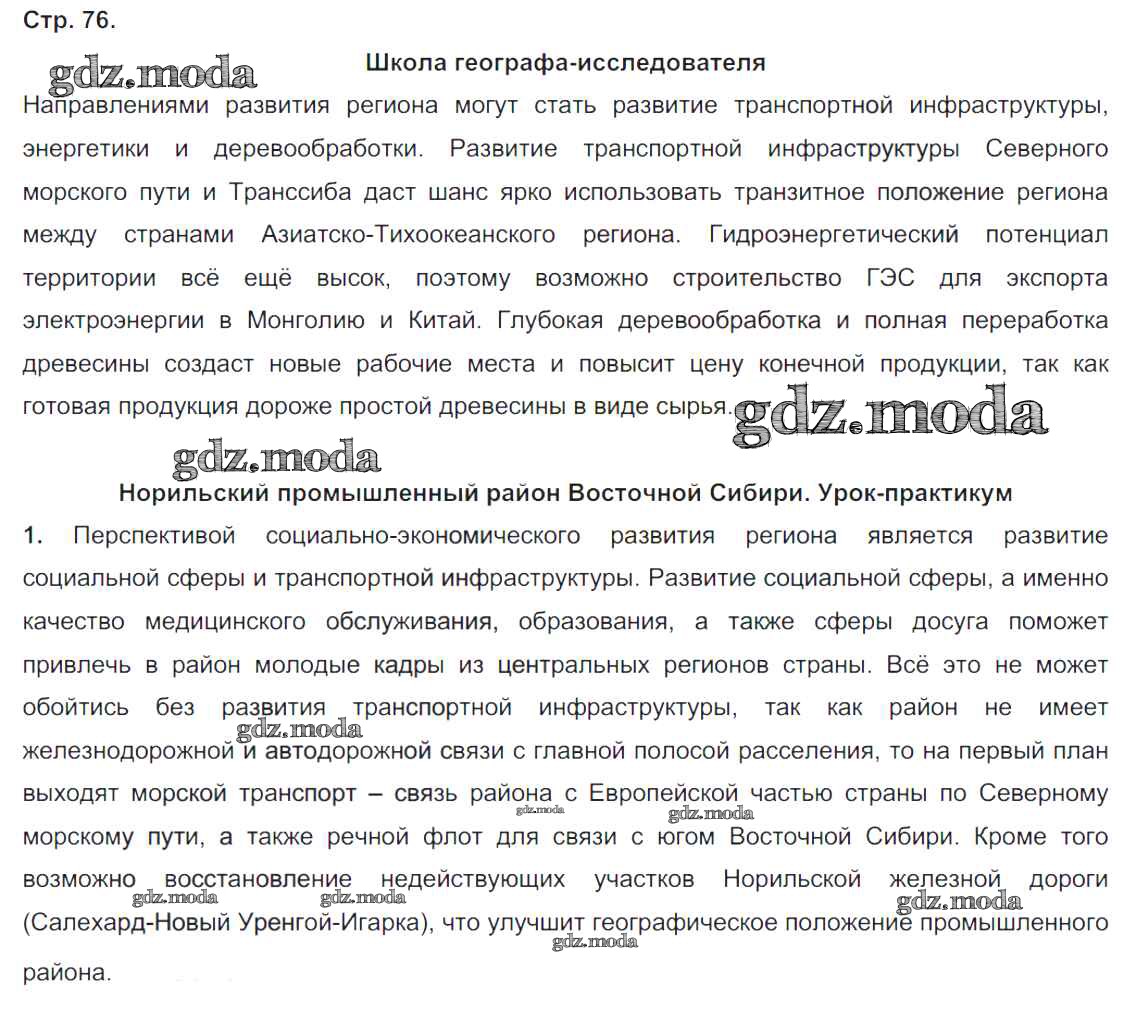 ГДЗ решение к заданию № 76 География 9 класс рабочая тетрадь Таможняя Е.А. Вентана-граф 2017 ФГОС бесплатно на гдз.мода!