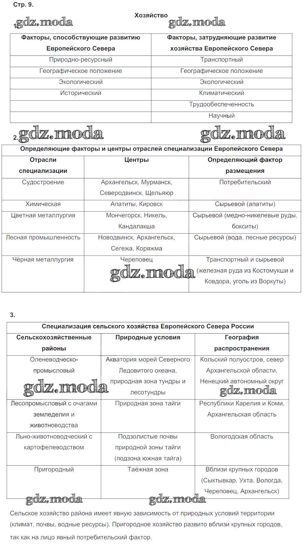 ГДЗ решение к заданию № 9 География 9 класс рабочая тетрадь Таможняя Е.А. Вентана-граф 2017 ФГОС бесплатно на гдз.мода!