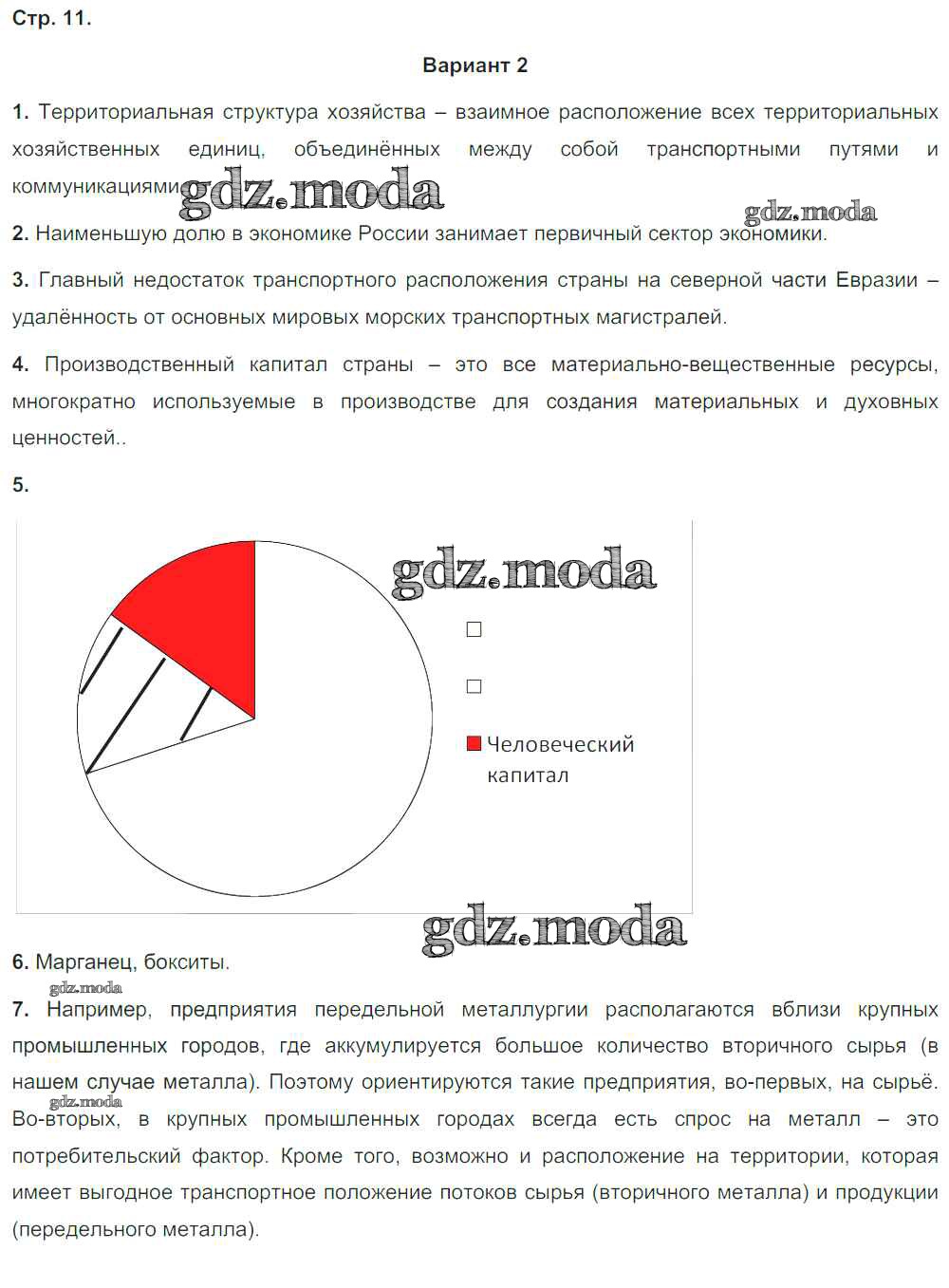 ОТВЕТ на задание № вариант-2 Тетрадь-экзаменатор по Географии 9 класс Барабанов Сферы