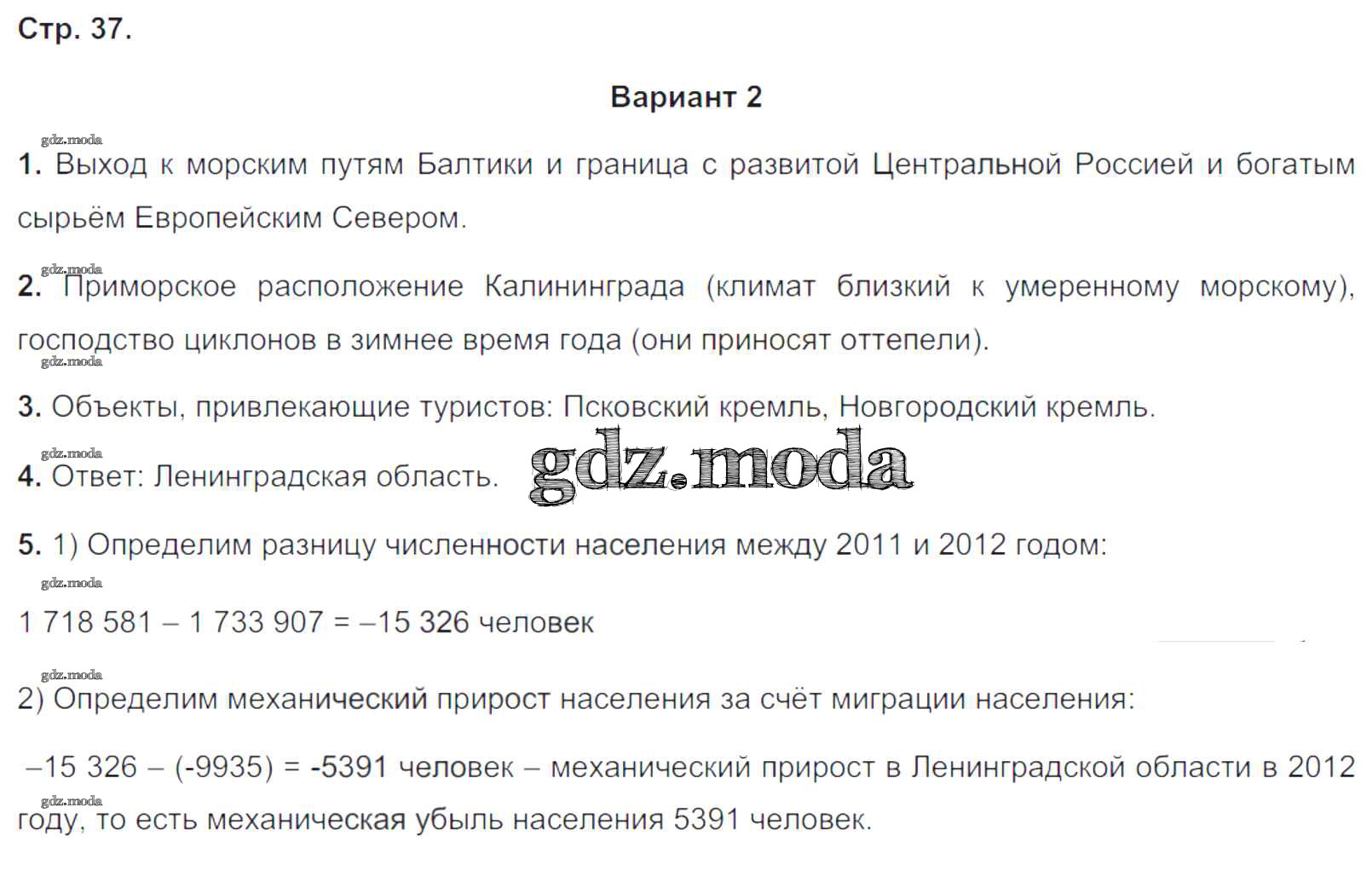 ОТВЕТ на задание № вариант-2 Тетрадь-экзаменатор по Географии 9 класс Барабанов Сферы