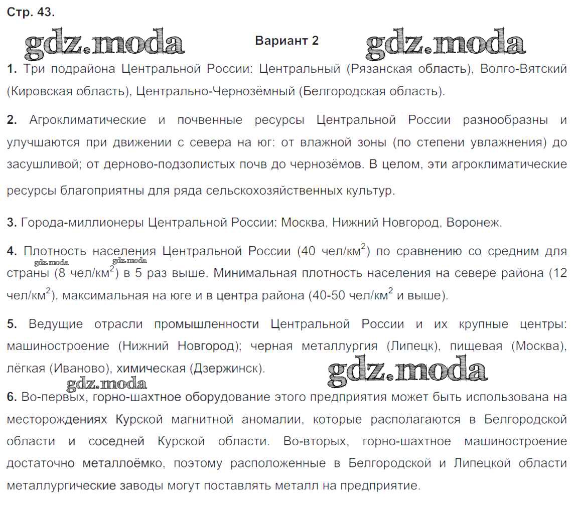 ГДЗ решение к заданию № вариант-2 География России 9 класс тетрадь-экзаменатор Барабанов В.В. Просвещение 2017 ФГОС бесплатно на гдз.мода!