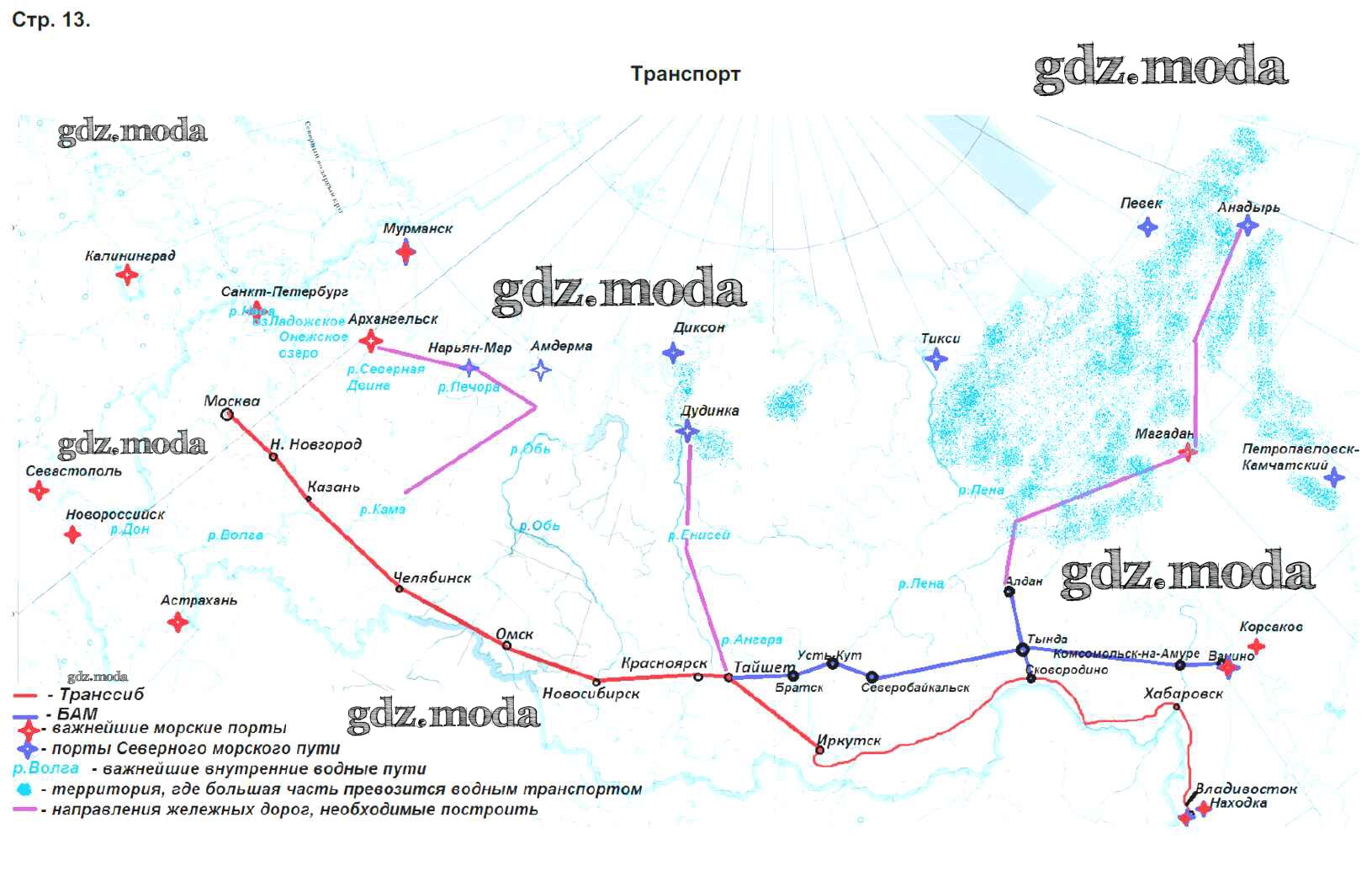 ГДЗ решение к заданию № стр.13. Транспорт-2 География 9 класс Контурные карты. Учись быть первым! Приваловский А.Н. Дрофа 2020 ФГОС бесплатно на гдз.мода!
