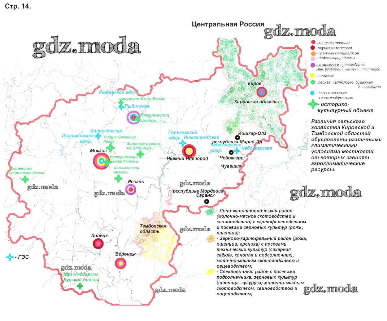ГДЗ решение к заданию № стр.14. Центральная Россия География 9 класс Контурные карты. Учись быть первым! Приваловский А.Н. Дрофа 2020 ФГОС бесплатно на гдз.мода!
