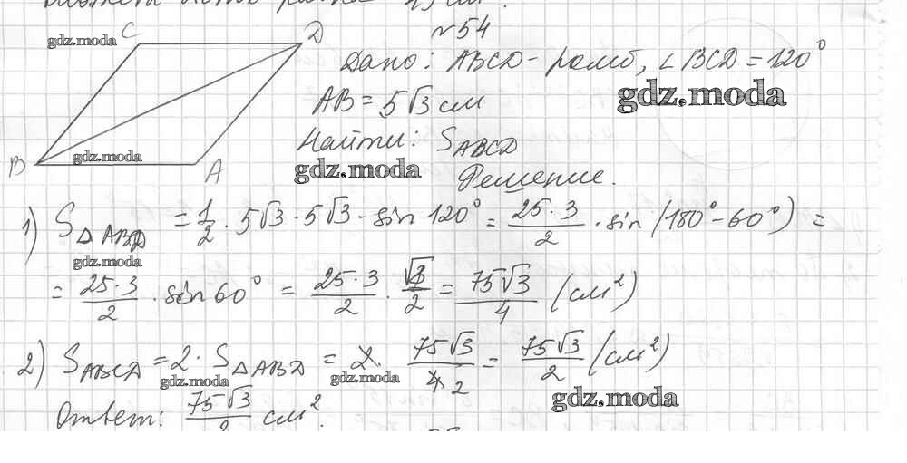 ОТВЕТ на задание № 54 Дидактические материалы по Геометрии 9 класс Мерзляк Алгоритм успеха