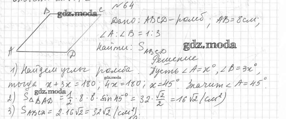 ОТВЕТ на задание № 64 Дидактические материалы по Геометрии 9 класс Мерзляк Алгоритм успеха