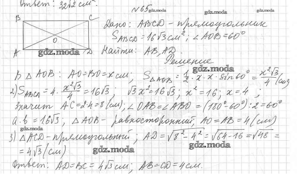 ОТВЕТ на задание № 65 Дидактические материалы по Геометрии 9 класс Мерзляк Алгоритм успеха