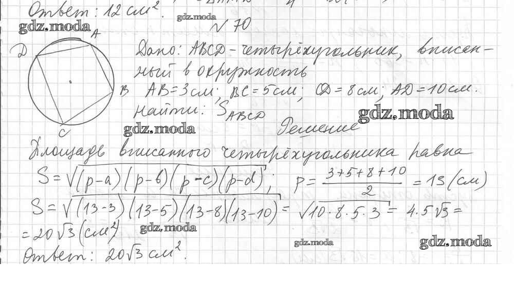 ОТВЕТ на задание № 70 Дидактические материалы по Геометрии 9 класс Мерзляк Алгоритм успеха