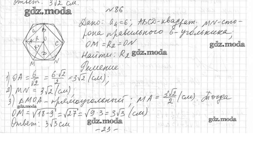 ОТВЕТ на задание № 86 Дидактические материалы по Геометрии 9 класс Мерзляк Алгоритм успеха