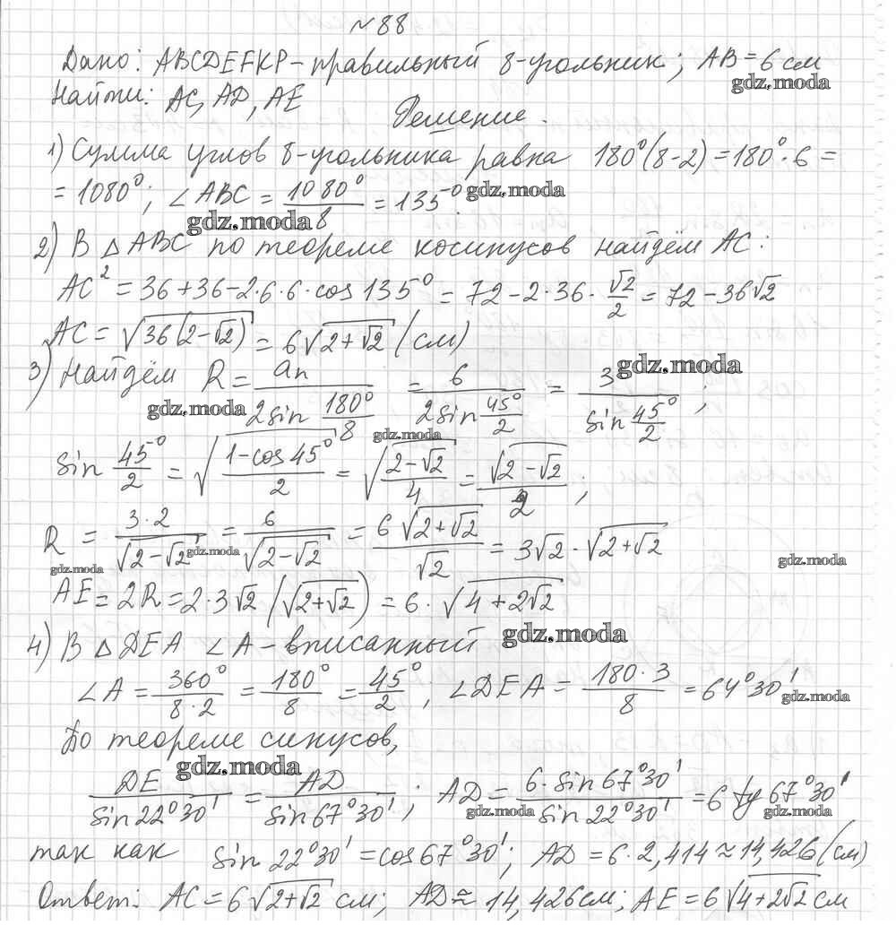 ОТВЕТ на задание № 88 Дидактические материалы по Геометрии 9 класс Мерзляк Алгоритм успеха