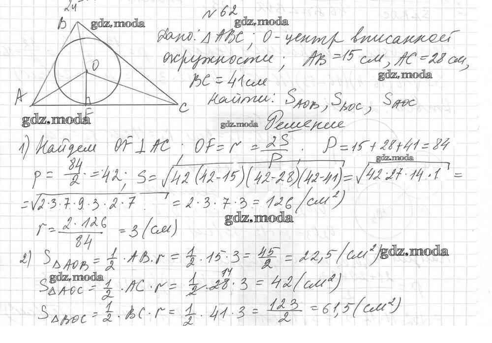 ОТВЕТ на задание № 62 Дидактические материалы по Геометрии 9 класс Мерзляк Алгоритм успеха