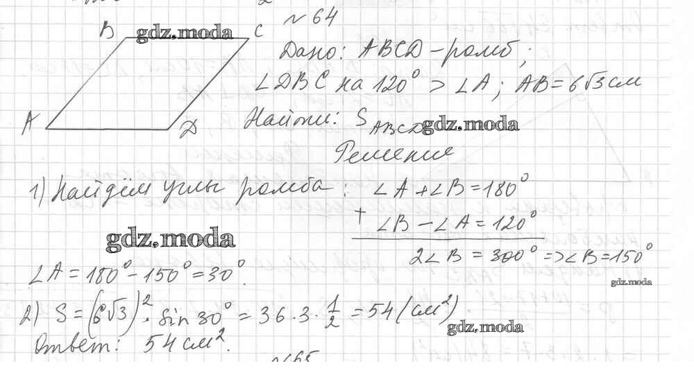 ОТВЕТ на задание № 64 Дидактические материалы по Геометрии 9 класс Мерзляк Алгоритм успеха