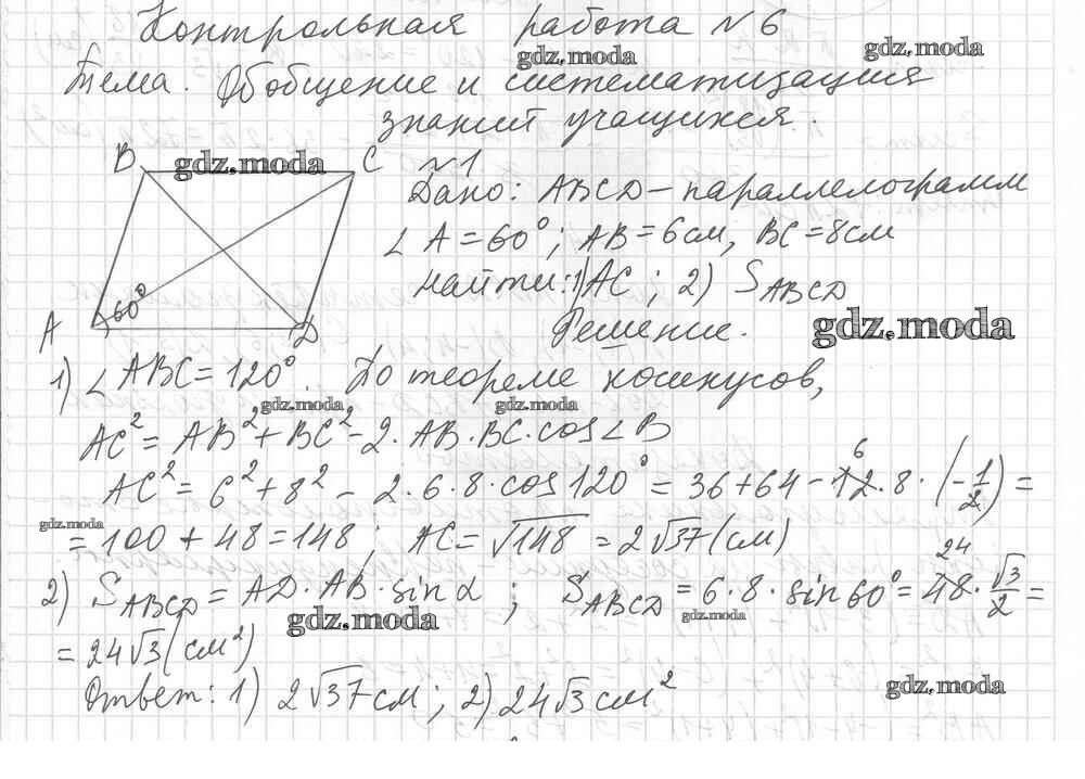 ОТВЕТ на задание № 1 Дидактические материалы по Геометрии 9 класс Мерзляк Алгоритм успеха