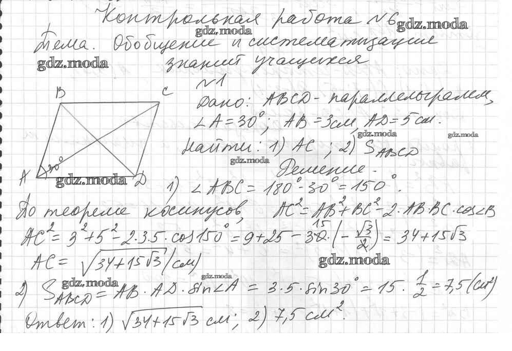 ОТВЕТ на задание № 2 Дидактические материалы по Геометрии 9 класс Мерзляк Алгоритм успеха