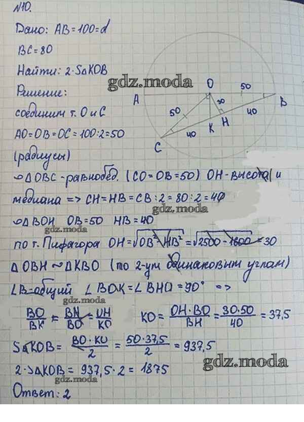 ОТВЕТ на задание № 10 Учебник по Геометрии 9 класс Казаков