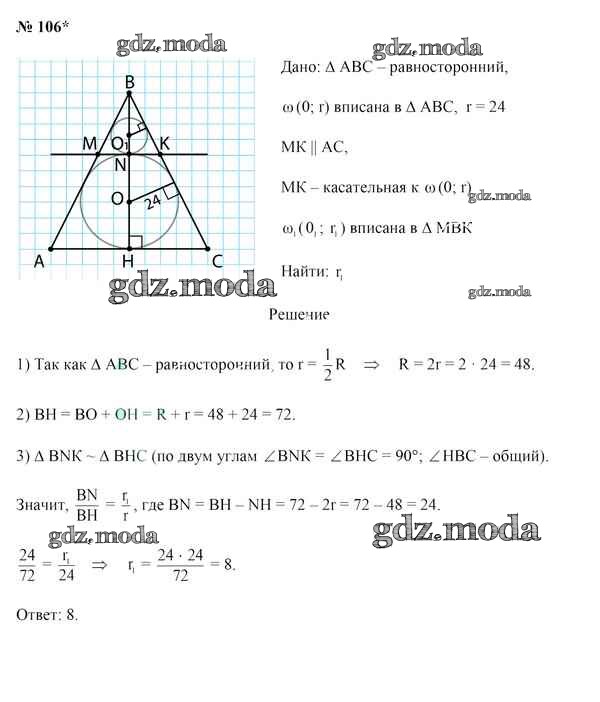 ОТВЕТ на задание № 106 Учебник по Геометрии 9 класс Казаков