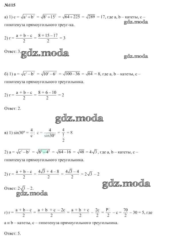 ОТВЕТ на задание № 115 Учебник по Геометрии 9 класс Казаков