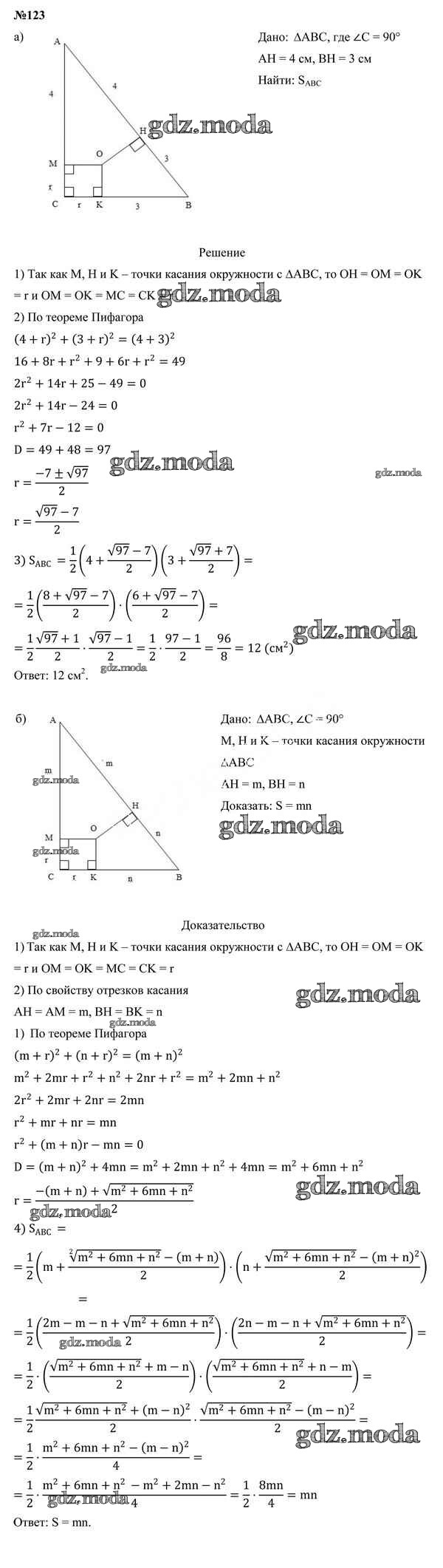 ОТВЕТ на задание № 123 Учебник по Геометрии 9 класс Казаков