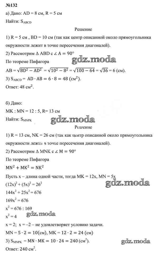 ОТВЕТ на задание № 132 Учебник по Геометрии 9 класс Казаков