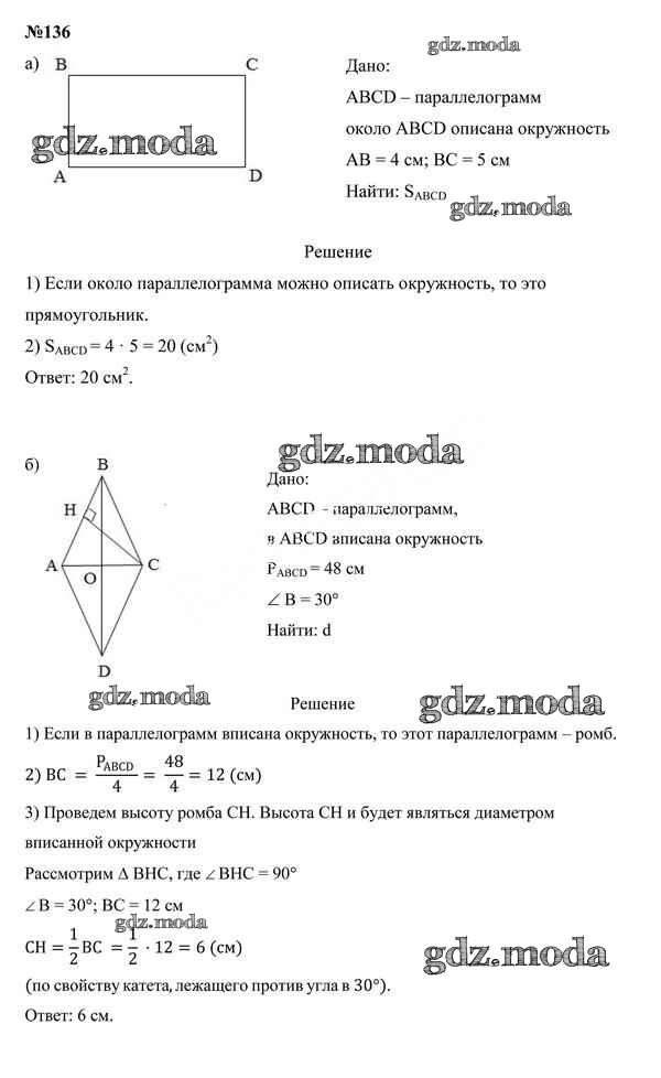 ОТВЕТ на задание № 136 Учебник по Геометрии 9 класс Казаков