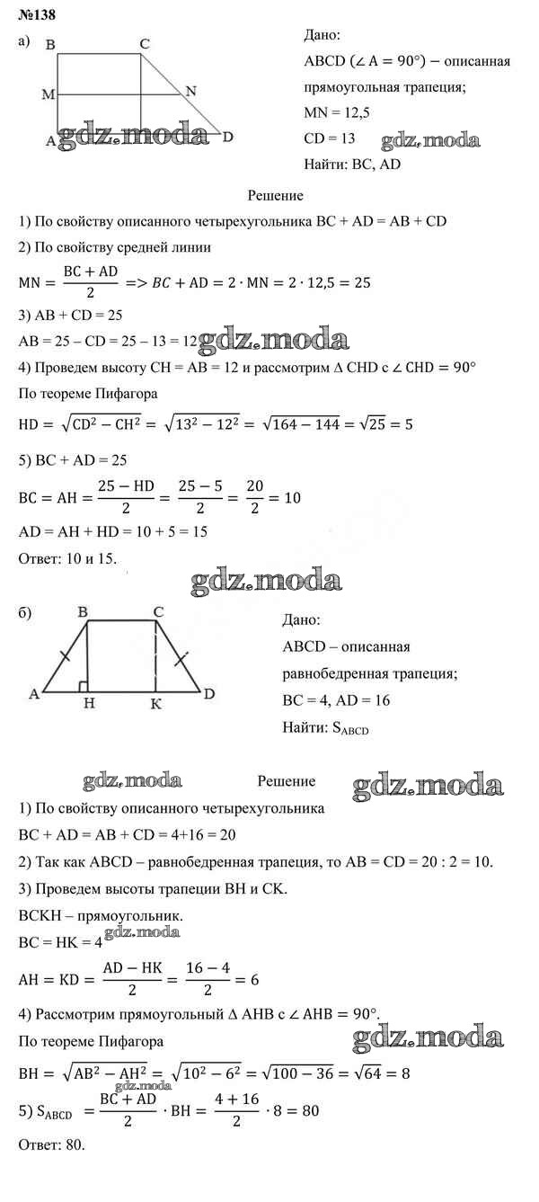 ОТВЕТ на задание № 138 Учебник по Геометрии 9 класс Казаков