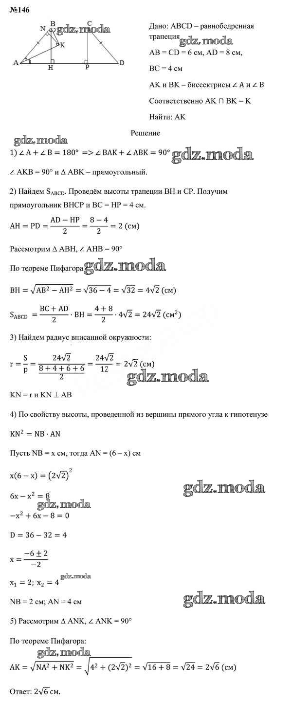 ОТВЕТ на задание № 146 Учебник по Геометрии 9 класс Казаков