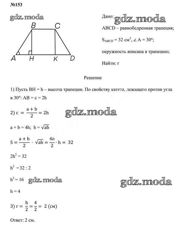 ОТВЕТ на задание № 153 Учебник по Геометрии 9 класс Казаков