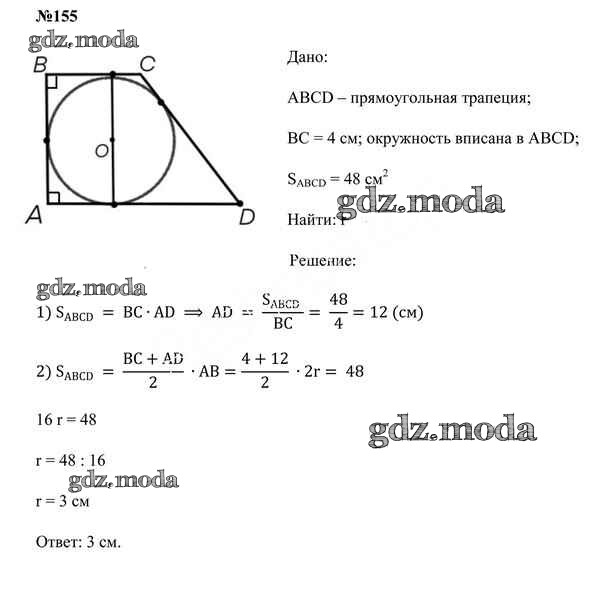 ОТВЕТ на задание № 155 Учебник по Геометрии 9 класс Казаков