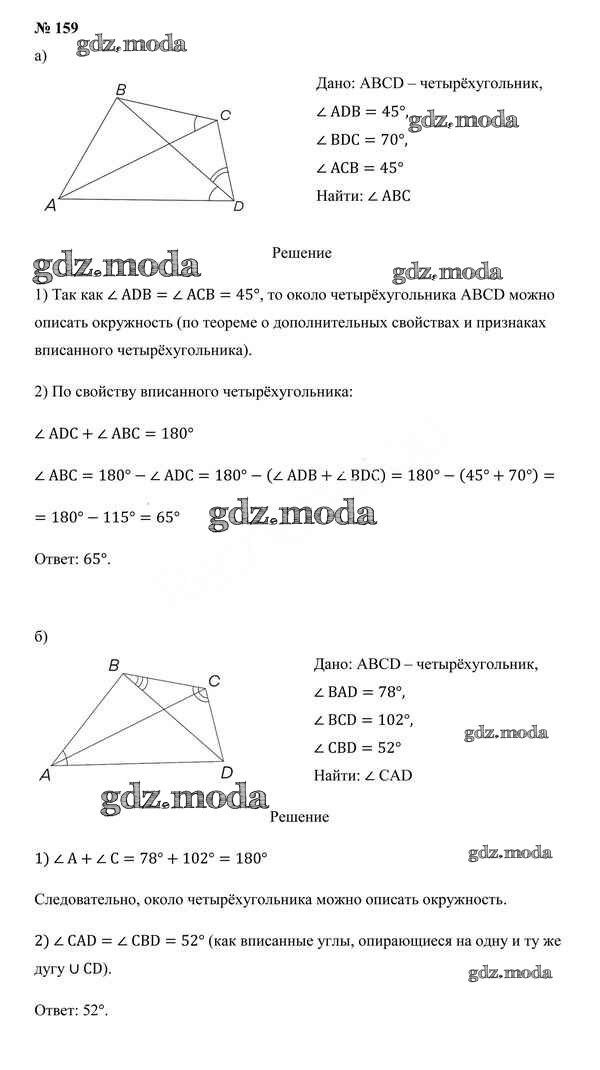 ГДЗ решение к заданию № 159 Геометрия 9 класс Казаков В.В. Народная асвета 2019 бесплатно на гдз.мода!
