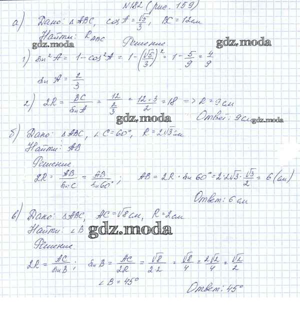 ОТВЕТ на задание № 182 Учебник по Геометрии 9 класс Казаков