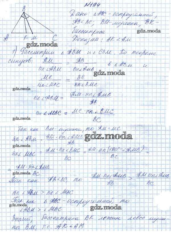 ОТВЕТ на задание № 194 Учебник по Геометрии 9 класс Казаков