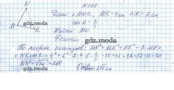 ОТВЕТ на задание № 198 Учебник по Геометрии 9 класс Казаков