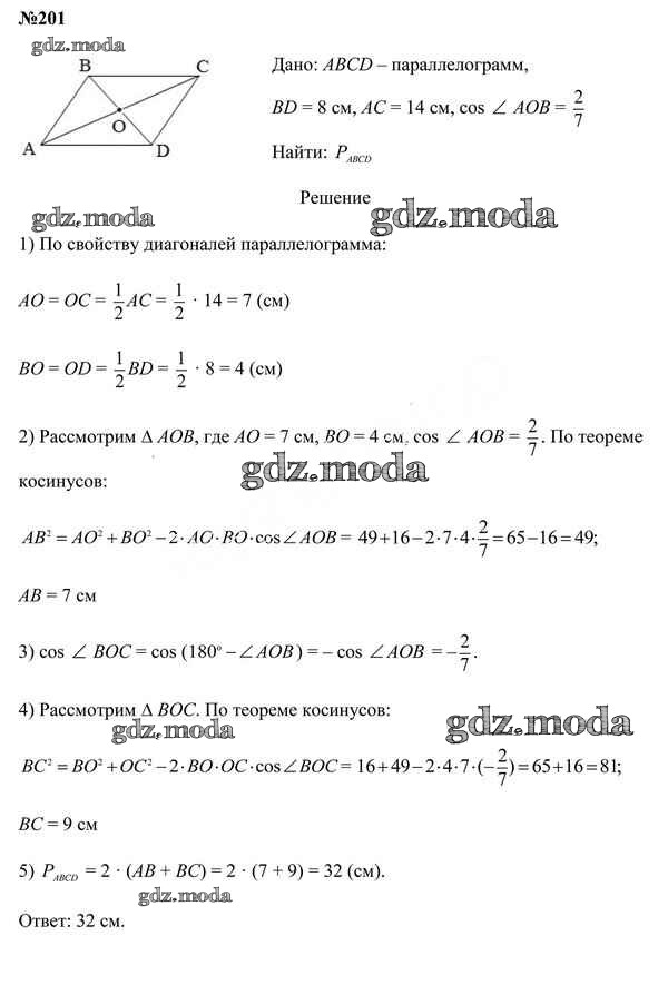 ОТВЕТ на задание № 201 Учебник по Геометрии 9 класс Казаков