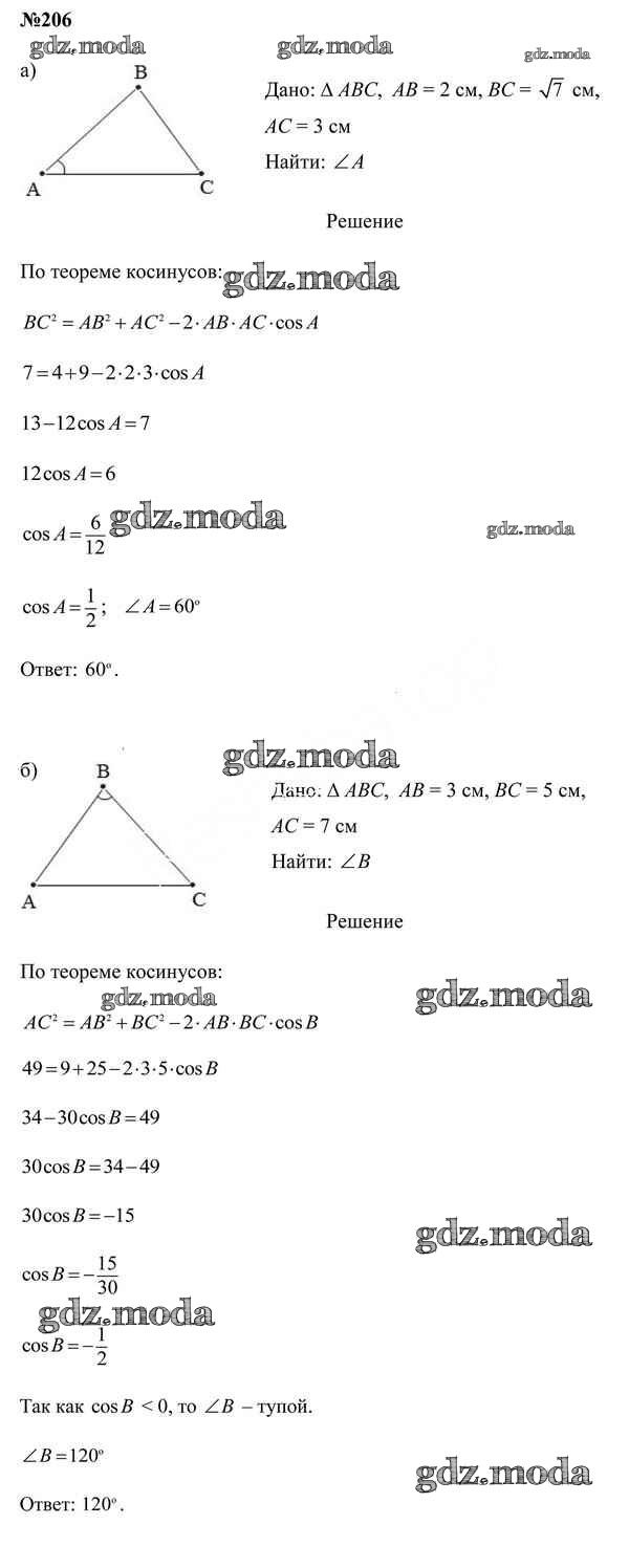 ГДЗ решение к заданию № 206 Геометрия 9 класс Казаков В.В. Народная асвета 2019 бесплатно на гдз.мода!