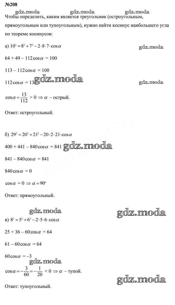 ОТВЕТ на задание № 208 Учебник по Геометрии 9 класс Казаков