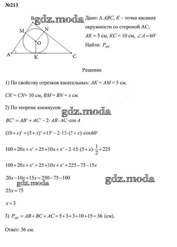 ОТВЕТ на задание № 213 Учебник по Геометрии 9 класс Казаков