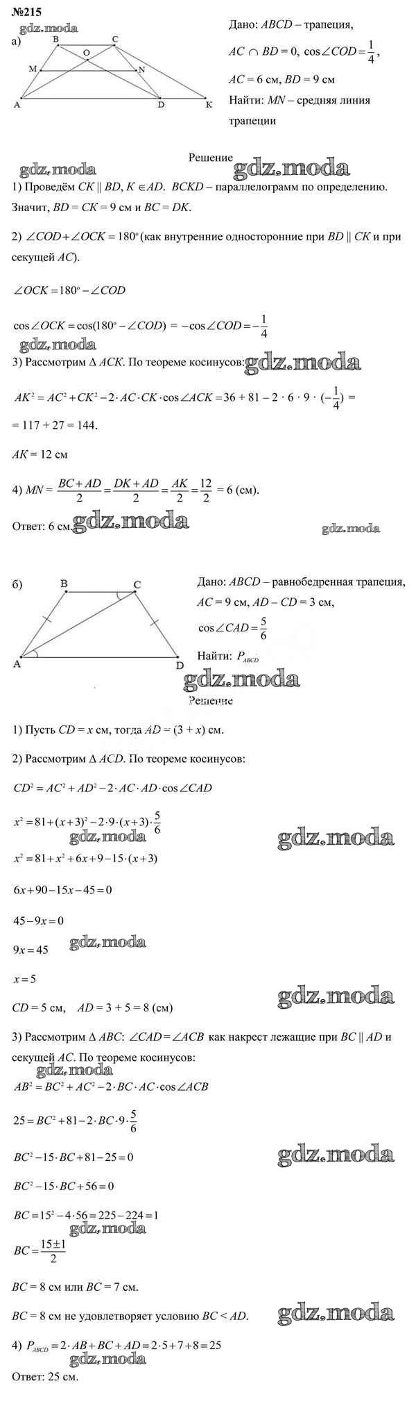 ОТВЕТ на задание № 215 Учебник по Геометрии 9 класс Казаков