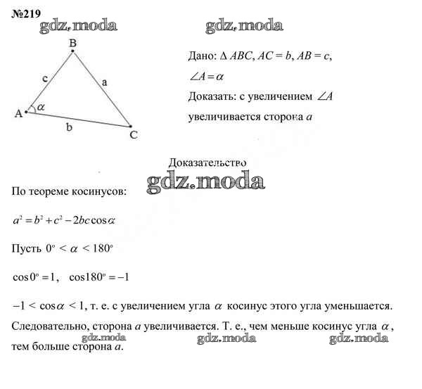 ОТВЕТ на задание № 219 Учебник по Геометрии 9 класс Казаков