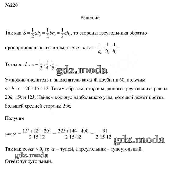 ОТВЕТ на задание № 220 Учебник по Геометрии 9 класс Казаков