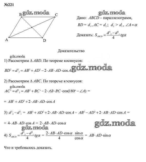 ОТВЕТ на задание № 221 Учебник по Геометрии 9 класс Казаков