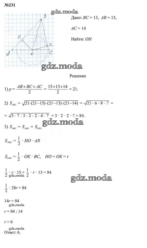ОТВЕТ на задание № 231 Учебник по Геометрии 9 класс Казаков