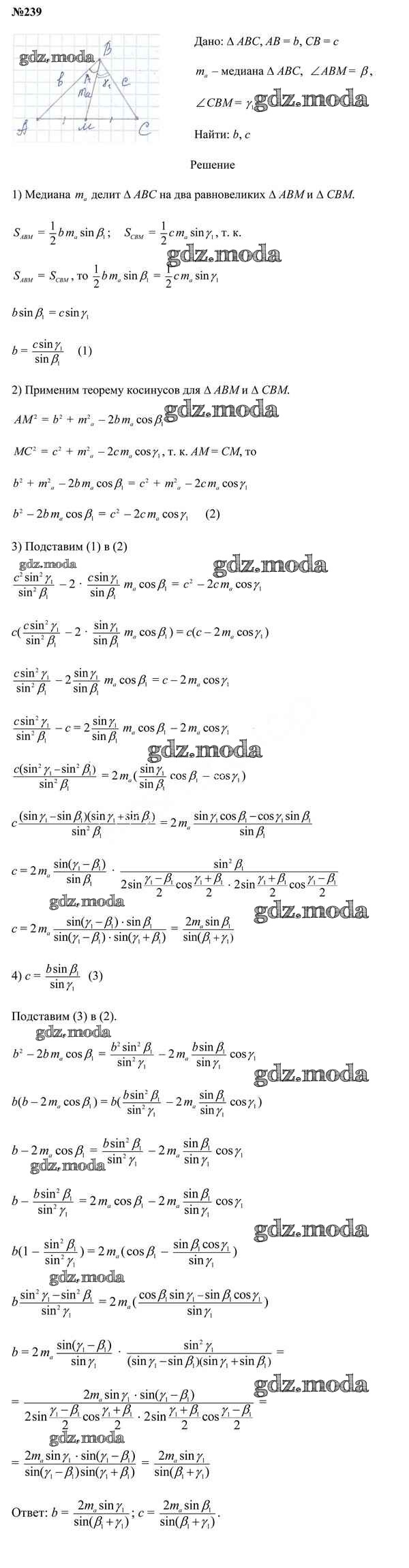 ГДЗ решение к заданию № 239 Геометрия 9 класс Казаков В.В. Народная асвета 2019 бесплатно на гдз.мода!