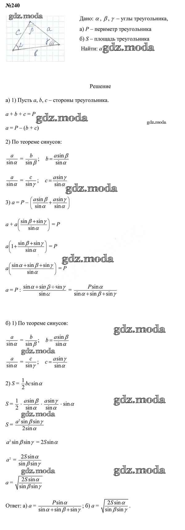 ГДЗ решение к заданию № 240 Геометрия 9 класс Казаков В.В. Народная асвета 2019 бесплатно на гдз.мода!