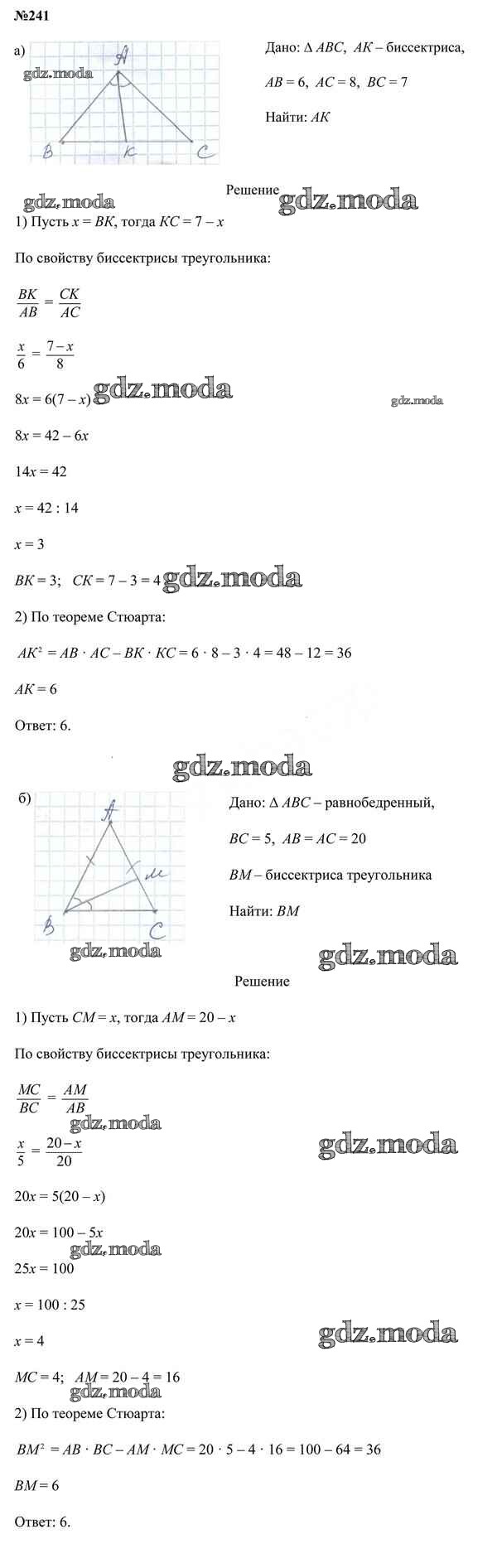 ОТВЕТ на задание № 241 Учебник по Геометрии 9 класс Казаков