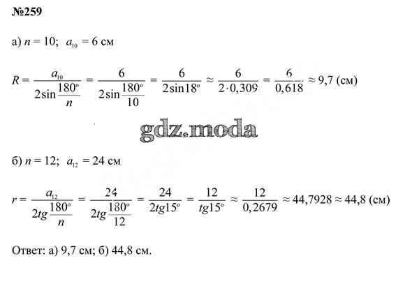 ОТВЕТ на задание № 259 Учебник по Геометрии 9 класс Казаков