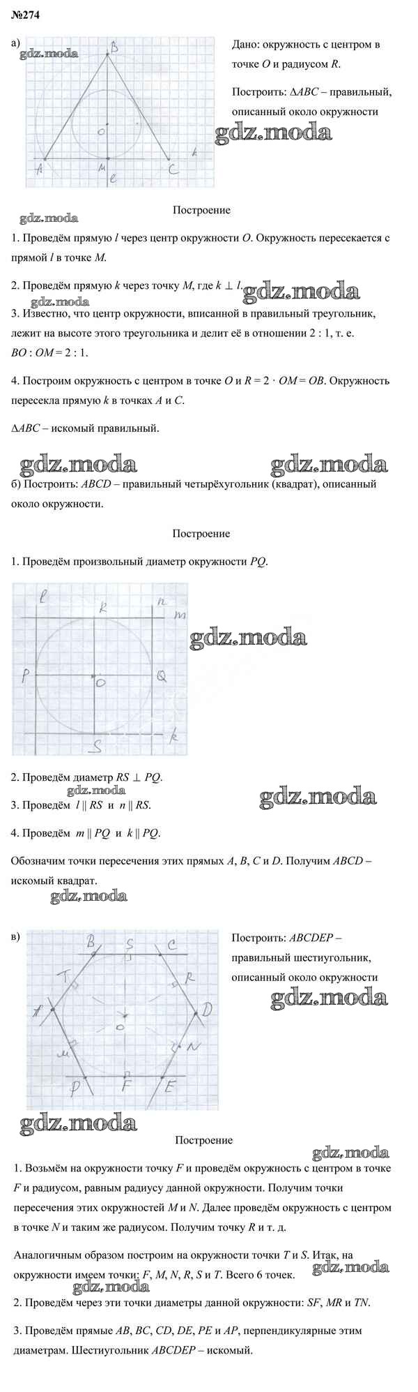 ОТВЕТ на задание № 274 Учебник по Геометрии 9 класс Казаков